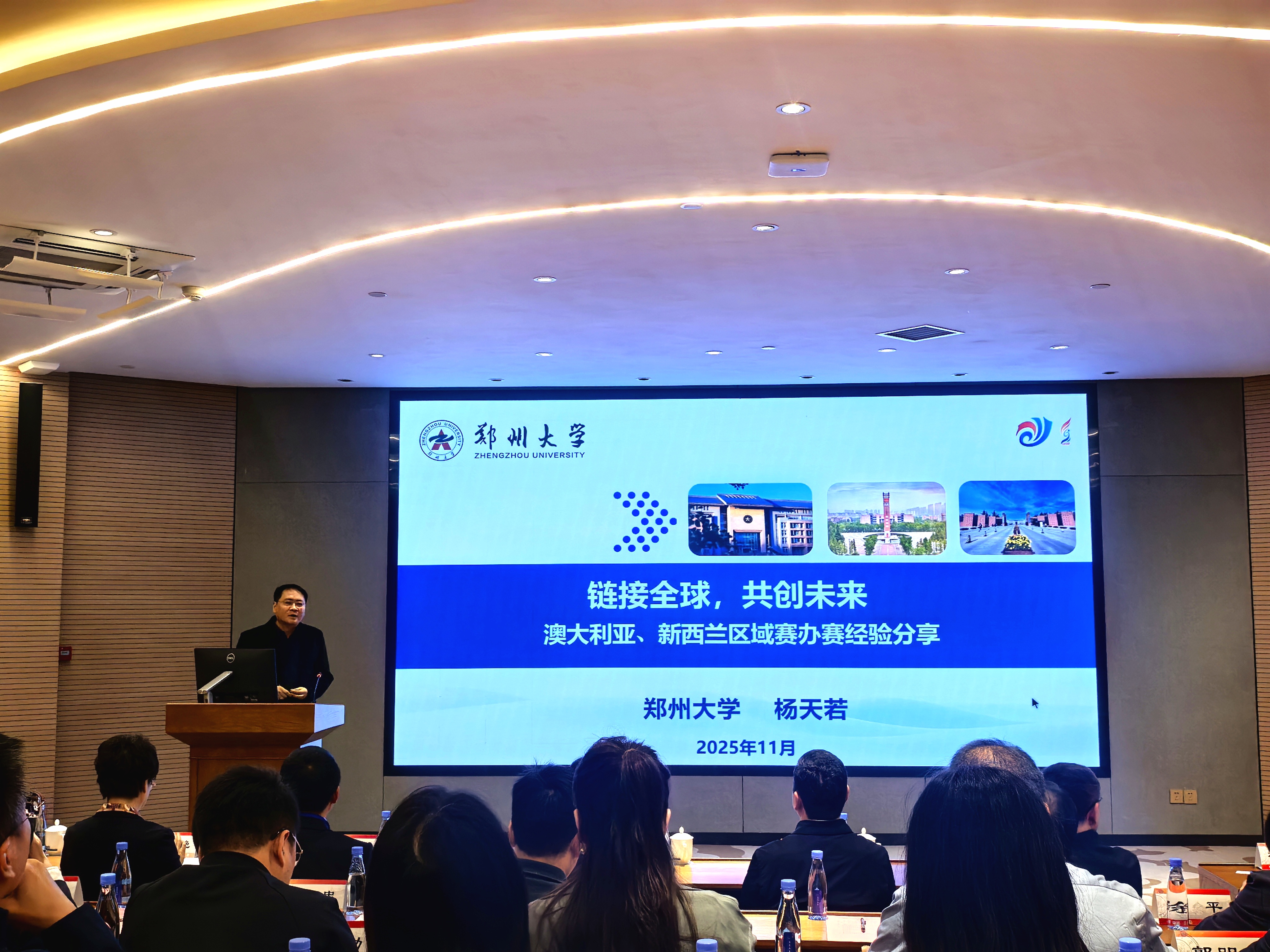 杨天若代表澳大利亚、新西兰区域赛承办校发言。他介绍,郑州大学依托澳新地区坚实的合作基础,通过全校联动、双向宣传、规范评审等举措,吸引澳新41所高校共679个项目、2028名学生参赛,最终评选出92个奖项。在全球总决赛中,澳、新赛区项目斩获8项金奖、14项银奖,进一步夯实与澳新高校的学术与师生合作基础,为中国高校赛事“走出去”提供了生动的实践样本。