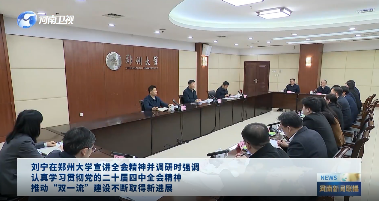 11月12日,省委书记刘宁在郑州大学主持召开学习贯彻党的二十届四中全会精神宣讲会,与师生代表交流学习体会,并深入部分学院、研究机构等调研。宣讲会上,郑州大学党委书记李成伟介绍了学校学习贯彻党的二十届四中全会精神情况,部分教师和学生代表结合工作实际和成长经历,畅谈了学习体会和收获。刘宁不时与大家交流互动,就师生关心关注的问题进行深入研讨,强调要认真学习贯彻党的二十届四中全会精神,推动“双一流”建设不断取得新进展。
