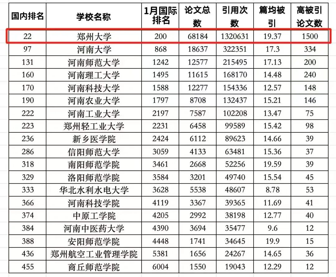 1.郑州大学坚持学科引领ESI最新排名国内高校第22位