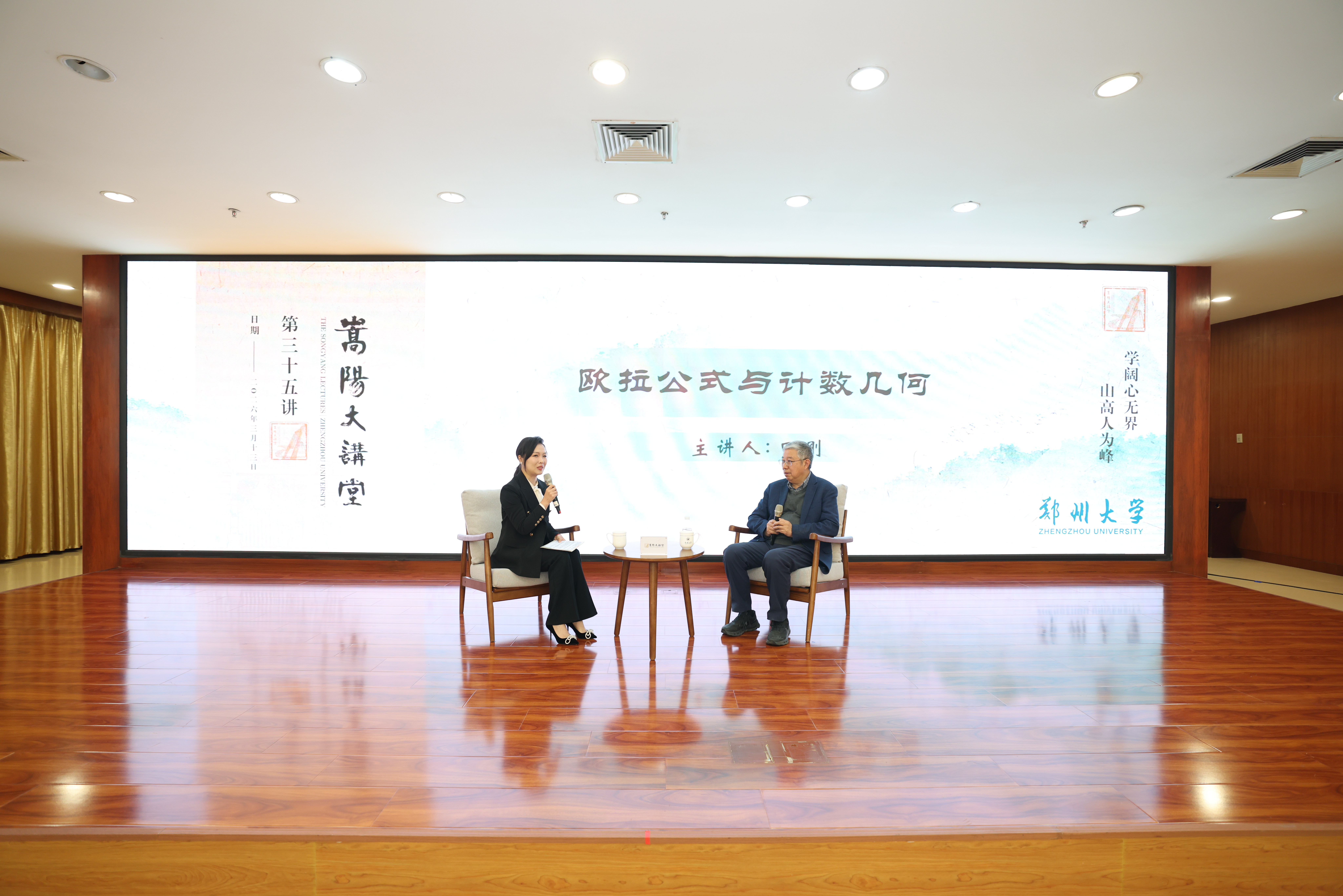 近日,郑州大学“嵩阳大讲堂”第三十五讲——田刚院士报告会在主校区举行,中国科学院院士、美国人文与科学院外籍院士、国际著名数学家田刚应邀作专题报告。相关部门和学院师生代表260余人参加活动。校党委常委、副校长王海杰主持报告会。