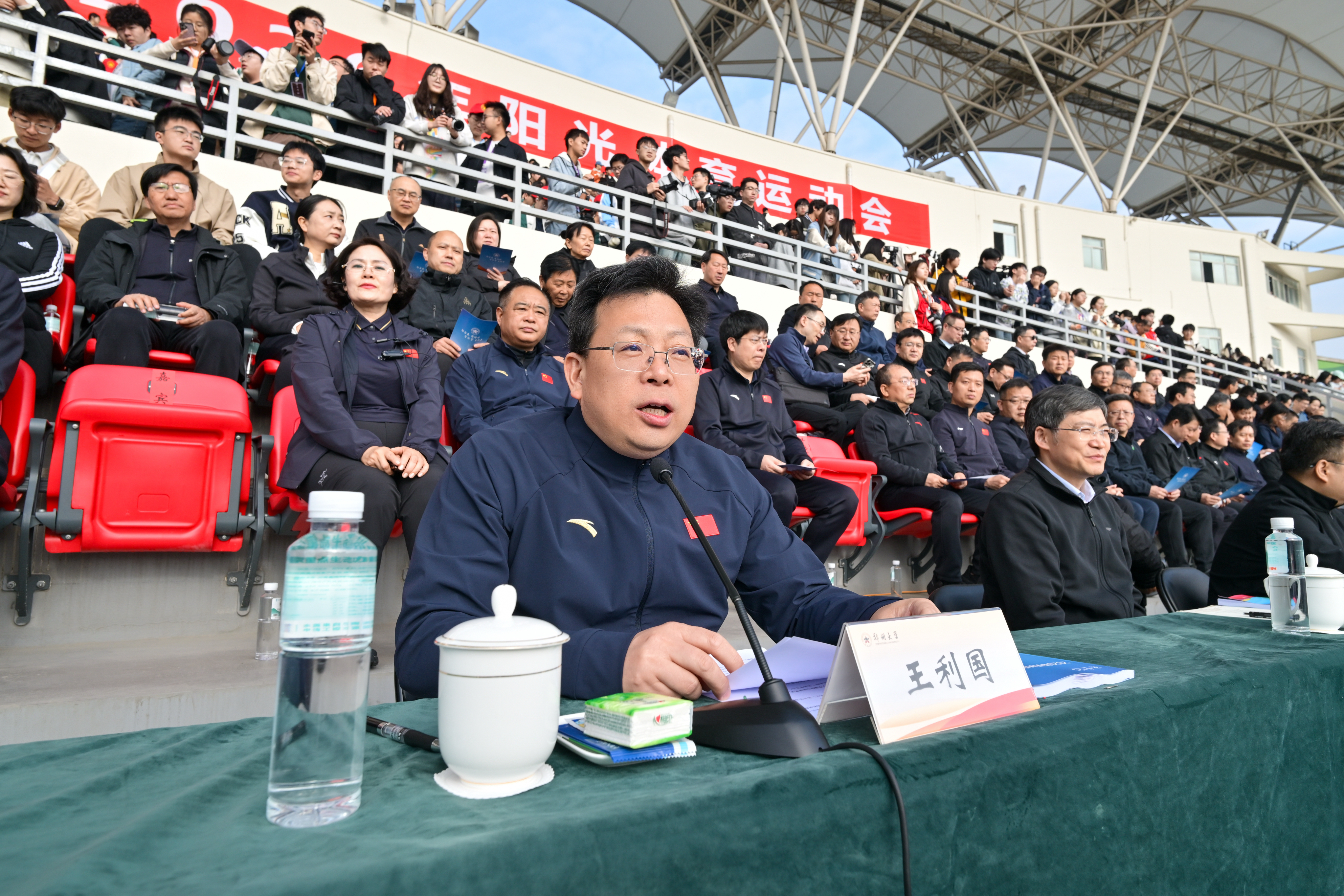 校长李蓬院士在致辞中指出,体育承载着国家强盛、民族振兴的梦想。一所一流大学的底蕴,不仅在于学术的高度,也在于师生奔跑的姿态与健康的底色。基于“让每个学生更优秀”的育人理念,学校提出“让每位师生更健康”的倡议,倡导全体参与,共同打造“健康校园”。过去一年,郑大体育工作成绩斐然,竞技赛场与群体活动双丰收。她强调,大学是一个充满活力的生命体,科学的体育运动正是激活这一生命体的优质“催化剂”,并对全校师生提出三点希望。一是让科学运动成为习惯,筑牢健康根基,让“身上有汗、眼里有光”成为郑大人的常态。二是用运动淬炼拼搏精神,砥砺奋发品格,将体育精神融入学业与工作,坚韧不拔、永不言败。三是以团结涵养郑大文化,凝聚一流合力,在运动中学会配合、彼此支撑,让团结协作成为郑大的精神底色。她号召大家以本届运动会为契机,在运动中收获健康,在拼搏中成就自我,在奋斗中绽放华彩。