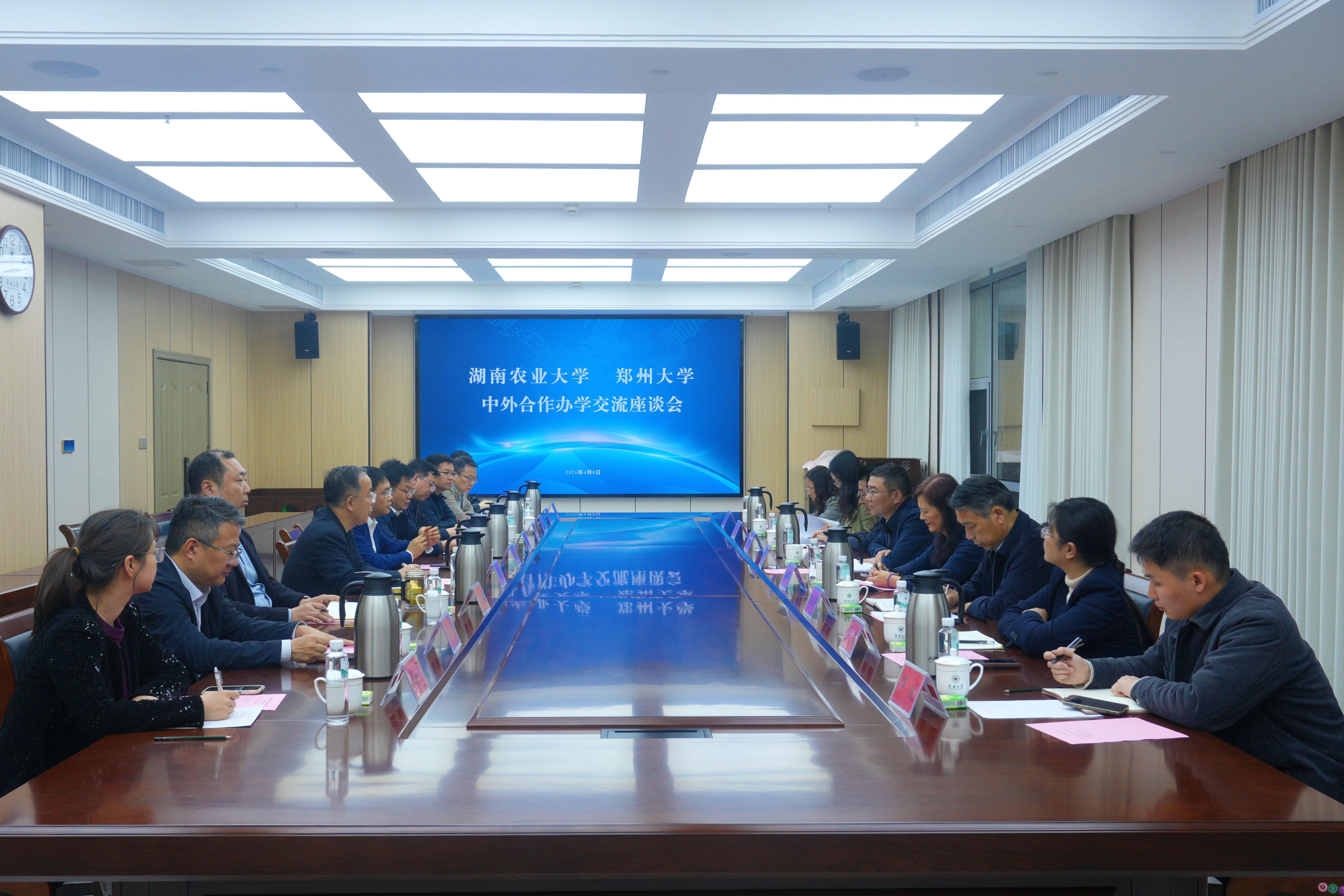 4月8日,湖南农业大学党委委员、副校长彭清辉一行到访郑州大学,开展国际化办学专题调研。学校召开座谈会,郑州大学计算机与人工智能学院、软件学院院长杨天若,国际学院、教务部、国际交流与合作处、人事部及资产与财务部相关负责同志参加座谈。