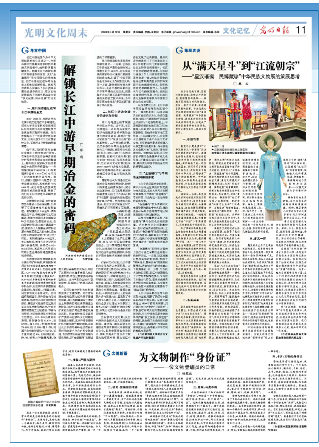 长江中游早期冶金考古的发现与进展,刷新了我们对中国早期冶金史的认知。从淅川沟湾遗址4500年前的青铜器,到石家河文化时期的“玉铜共生”,再到后石家河文化时期的跨区域交流,长江中游的早期冶金始终保持着“独立发展、开放包容”的特征,既构建了本地的技术谱系,又通过“金道锡行”与周边区域深度互动,最终融入中华文明的整体发展进程。(作者系郑州大学考古与文化遗产学院副教授)