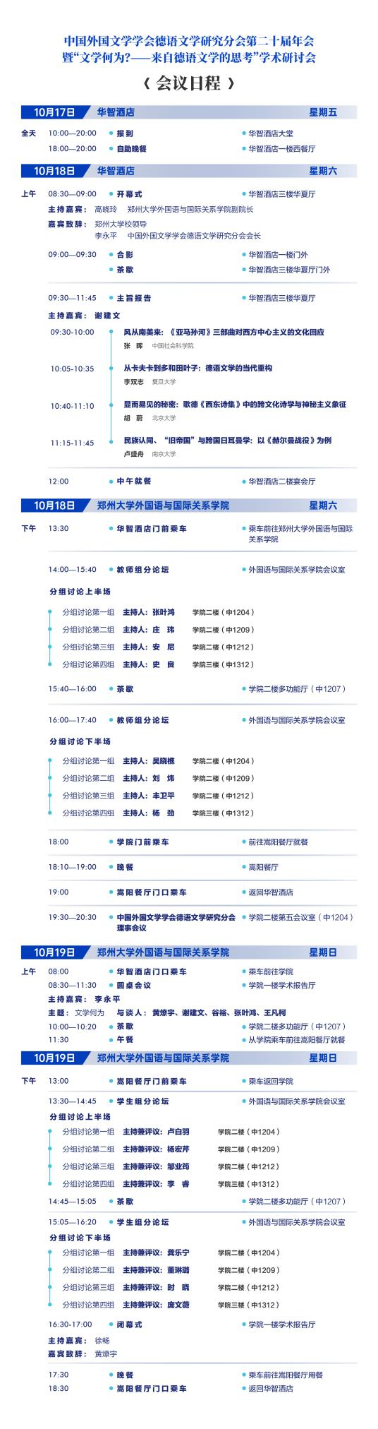 “文学何为”是一个古老的问题,也是一个永恒的问题。当今世界是一个危机与机遇并存的时代:一方面,贸易摩擦不断,地缘冲突频仍;另一方面,数智大潮涌起,网络文学方兴未艾。这一切都正在强烈地冲击着传统意义上的严肃文学。不论是文学研究,还是文学教学,抑或是文学阅读,在如今这样一个充满变数的全球化转型的新时代里,无不接受着来自国际政治、经济危机和技术革新的多重洗礼。面对前所未有的压力,中国德语文学研究者依然秉持反思与开拓并重、危机意识和机遇把控共存的优良传统,时刻关注着人文精神的存续及其与时代相结合的可能性。有鉴于此,中国外国文学学会德语文学研究分会携手郑州大学外国语与国际关系学院,于2025年10月18日—19日共同举办第二十届德语文学年会暨学术研讨会。本届年会将以“文学何为?——来自德语文学的思考”为主题,借此向“文学何去何从”这一世纪之问交出一份时代答卷。在此,学会及郑州大学谨向您发出诚挚邀请,企盼您的出席并参与讨论。